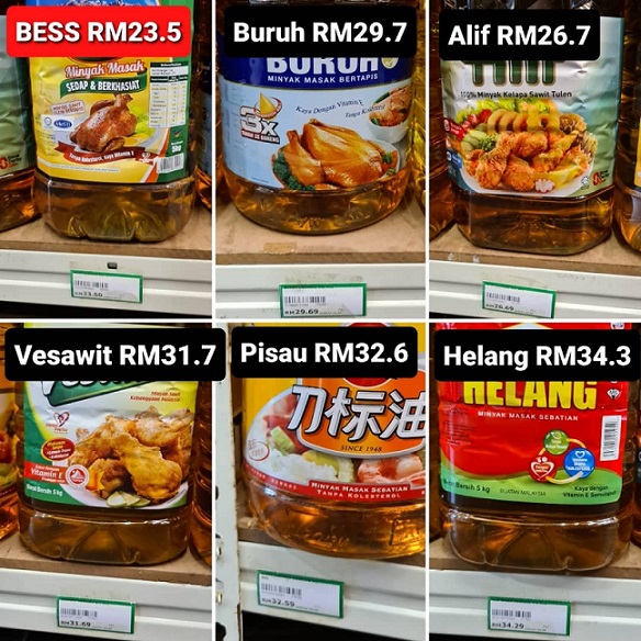 “Masuklah mana-mana pasaraya. Kamu boleh nampak harga minyak masak dari KL yang dahulunya hanya RM20 lebih semua sudah mencecah RM30.